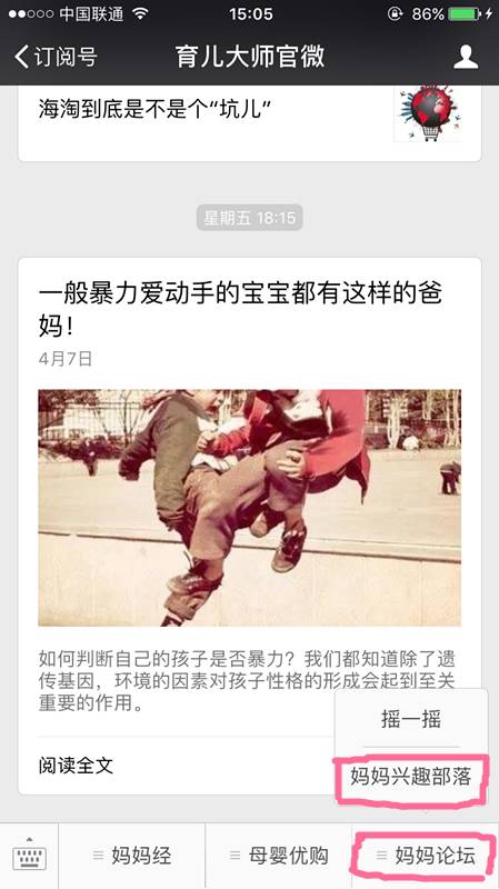 点击公众号右下方菜单【妈妈论坛】——进入【妈妈兴趣部落】