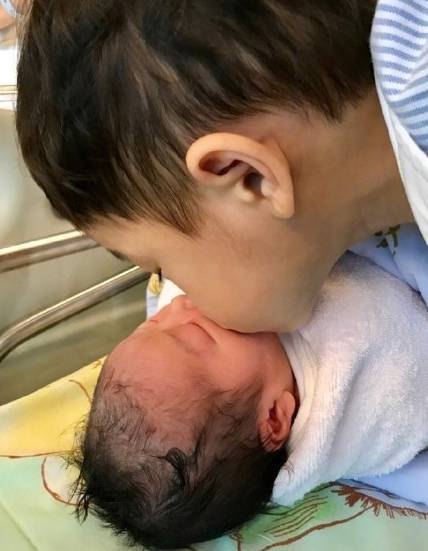 24日中午,霍启刚在微博报喜老婆郭晶晶顺利产下一千金,母女平安。霍启刚还配上一张儿子趴在床边亲吻妹妹的照片,“你看哥哥多乖,一点嫉妒都没有,很疼爱小妹妹!”并透露儿子为新生小女儿买了小礼物,看来十分喜爱妹妹。
