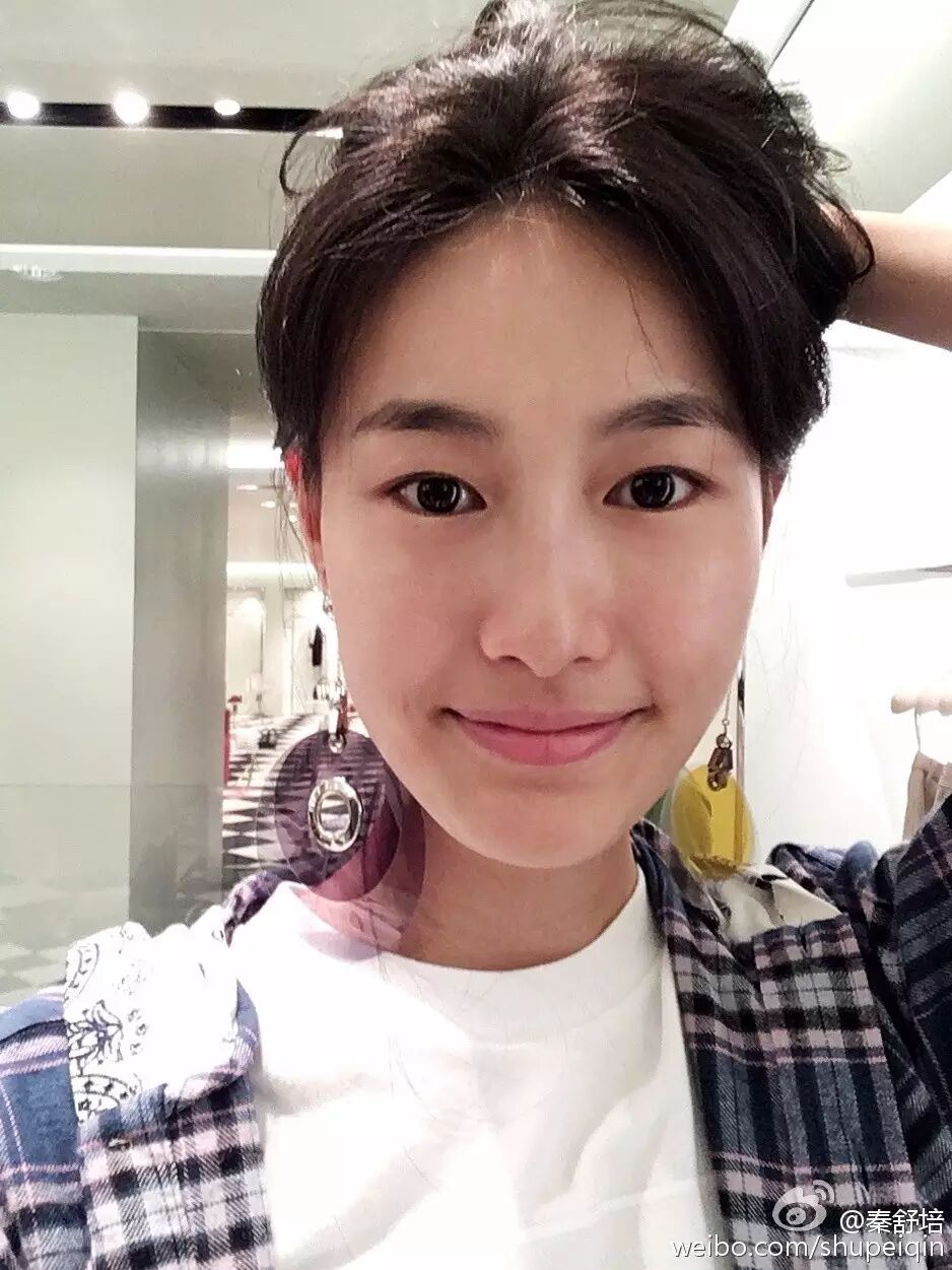 前阵子突然剪了短发的秦舒培让人怀疑是为生产做准备~仔细看五官,和以前怎么不一样了呢?!
