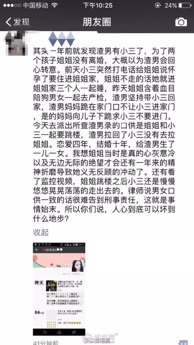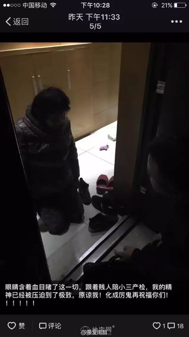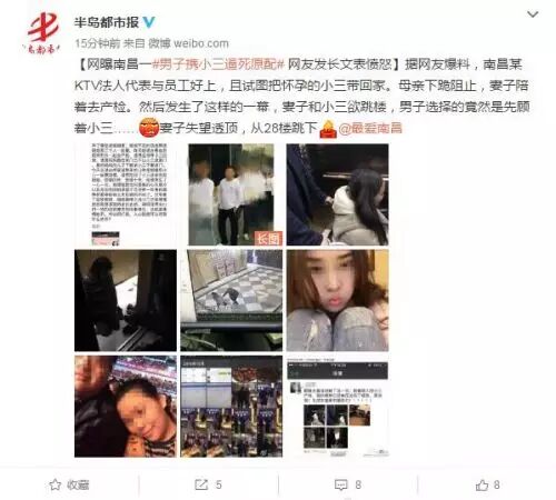 12月9日凌晨,微博账号@最爱南昌 发布一条消息,称“男子携小三逼死原配”: