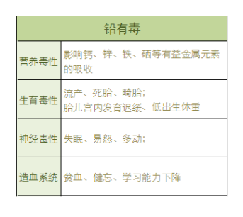 铅是一种惰性重金属元素,容易经由皮肤接触、呼吸空气、吃东西等进入体内。过高的血铅对神经系统、造血系统、生殖系统等人体多个器官造成伤害,导致失眠、易怒、厌食、健忘,学习能力下降等多种相关症状。血铅过高会透过胎盘还会进一步影响胎儿,导致胎儿宫内发育迟缓、流产、死胎、畸形。所以孕妇更要注意监测血铅水平。