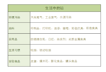 据李雪丹介绍,铅是现代工业社会的必然产物,无处不在。比如平常装修时使用的各种油漆,铅的含量比较高。另外,铅还存在于各种金属物品中,如新房子里面长期不用的水管里的水,工地扬尘,马路边上的汽车尾气等等都是可能摄入铅的原因。