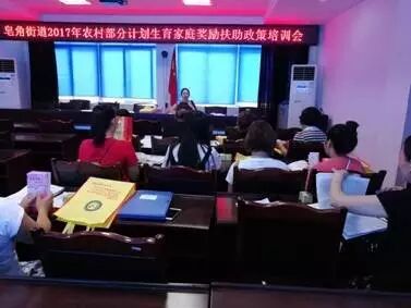 根据《四川省农村部分计划生育家庭奖励扶助政策解释》文件要求,为做好2017年奖励扶助工作,7月31日,皂角街道对辖区各村(社区)计生专干进行了2017年农村部分计划生育家庭奖励扶助政策培训。