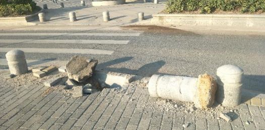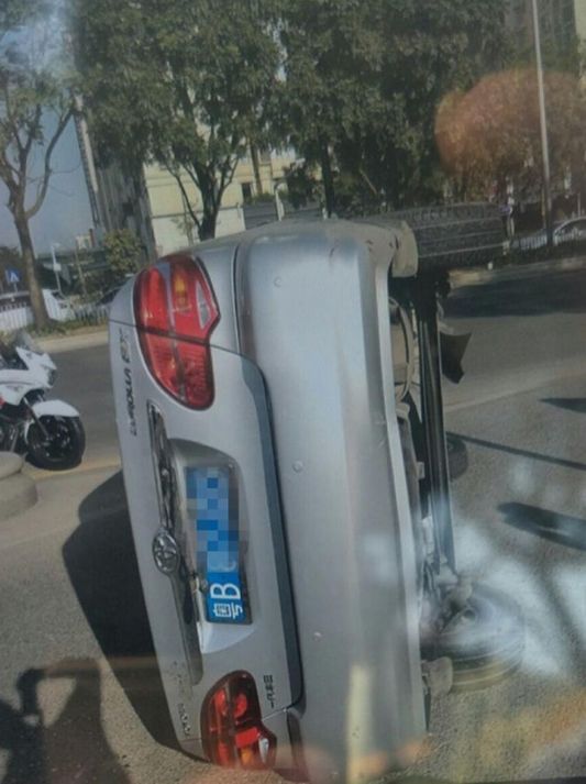 据了解,这辆小汽车在进入右转车道时车速过快,撞上右边路基石柱上造成车辆侧翻。