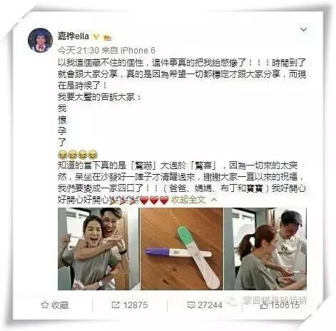 就在昨天,Ella在微博上公布了喜讯——自己要升级当妈啦!!!