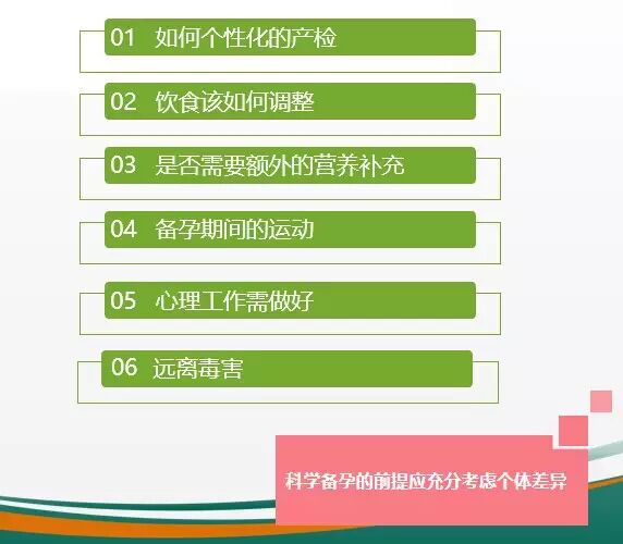 关于备孕的注意事项和相关书籍非常多,信息量之大,让准爸爸妈妈们不知道如何选择,也不知道哪一个适合自己。其实不用迷茫,我们每一个人的身体状况都具有差异性,决定了每一个人的备孕都是不一样的。