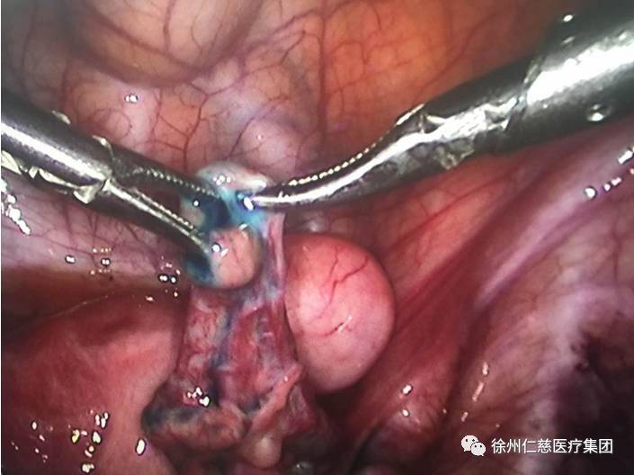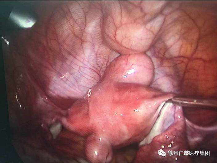 2017年3月7日,手术进行。术中在腹腔镜直视下,鲍主任术前检查已知晓的一枚肌瘤外,张女士的宫体右前壁也可见约1.5*1.5cm大小的浆膜下肌瘤凸起;右侧输卵管伞端粘连,壶腹部系膜可见约1.0*1.0cm大小囊肿一枚;乙状结肠与侧盆壁纤维索样粘连。经验丰富的鲍主任,行既定方案,实施了宫肌瘤剥除术+宫腔镜下宫腔粘连电切术+盆腔粘连松解术+输卵管通液术。