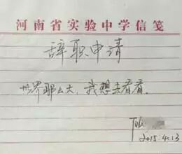 这是2015年4月份河南一个中学女老师的辞职申请