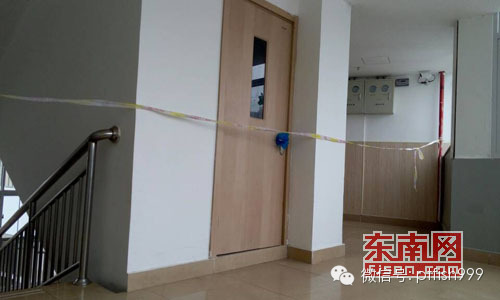今日下午2时许,记者来到莆田莆田学院附属医院旧区住院部,通往楼顶的一小门已被锁死,并拉起了警戒线。