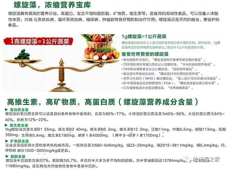 6、螺旋藻含有很高的Y亚麻酸,可促进钙的吸收,提高免疫力、防止代谢紊乱和抗衰老的功能。