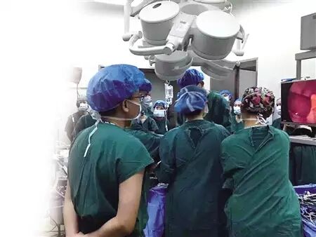 医生对王婷进行手术通讯员 南宣 记者 李化 摄