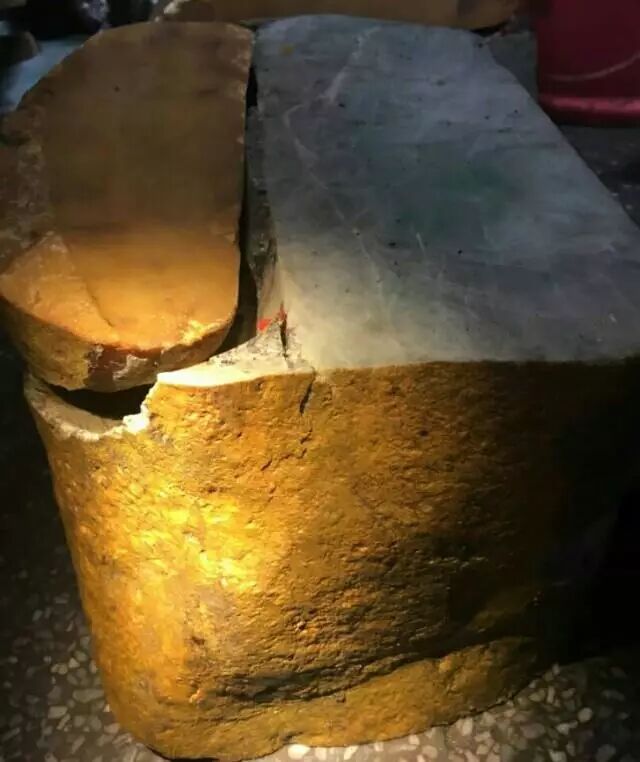 开切的时候李某激动的要命,信心十足。小编也不知道李某哪里来的这么大的信心,切开来一看这块原石竟然是造假拼接的,店员一下就看出了有不对劲的地方,李某傻眼了、这种料行内称做“蒙头料”小编一看就懂了,里边的填充可真丰厚啊。