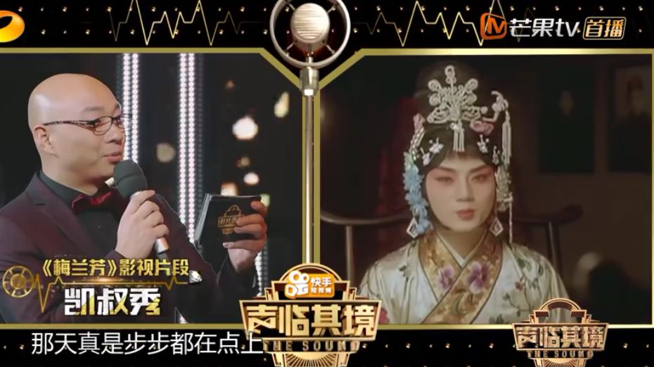 这时候主持人王凯慢悠悠开口说,其实刚刚电影中的梅兰芳并不是原声,而是他配的。