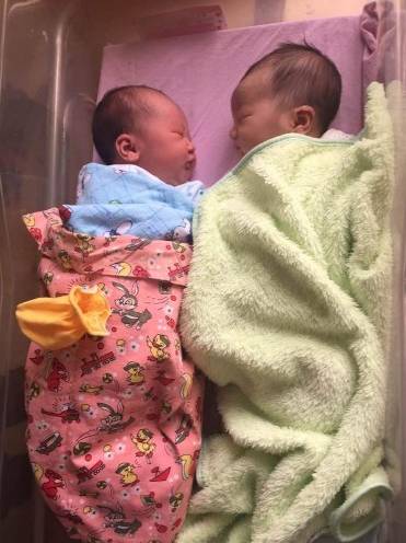 2016年10月18日,妹妹婧婧先动了红住进了医院安心待产,10月19日凌晨3时许,妹妹破了水,姐姐在家上洗手间的时候也发现自己破了水,经过一天的努力,妹妹于2016年10月19日下午5时许,抢先生出了一个健康的男宝,6斤6两;姐姐于2016年10月19日晚上10时许,顺产下一个健康的女宝,同样也是6斤6两。