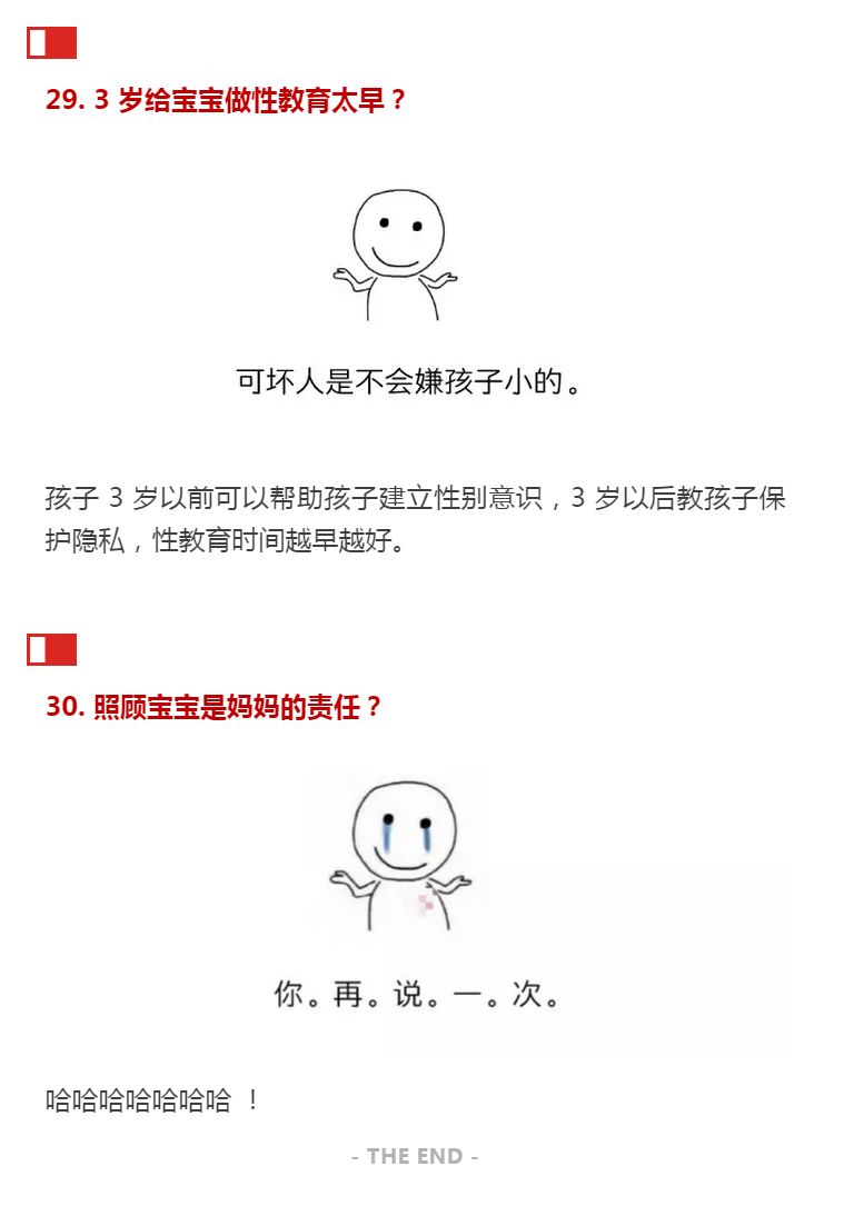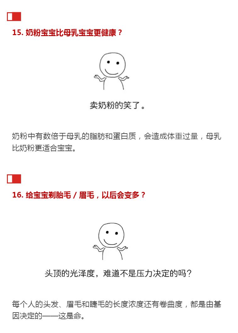 今天在网上看到这个帖子,作者一口气整理出了 30 条育儿干货,把从孕期到3岁里坑娘坑娃的谣言全找来,逐一加以批判。