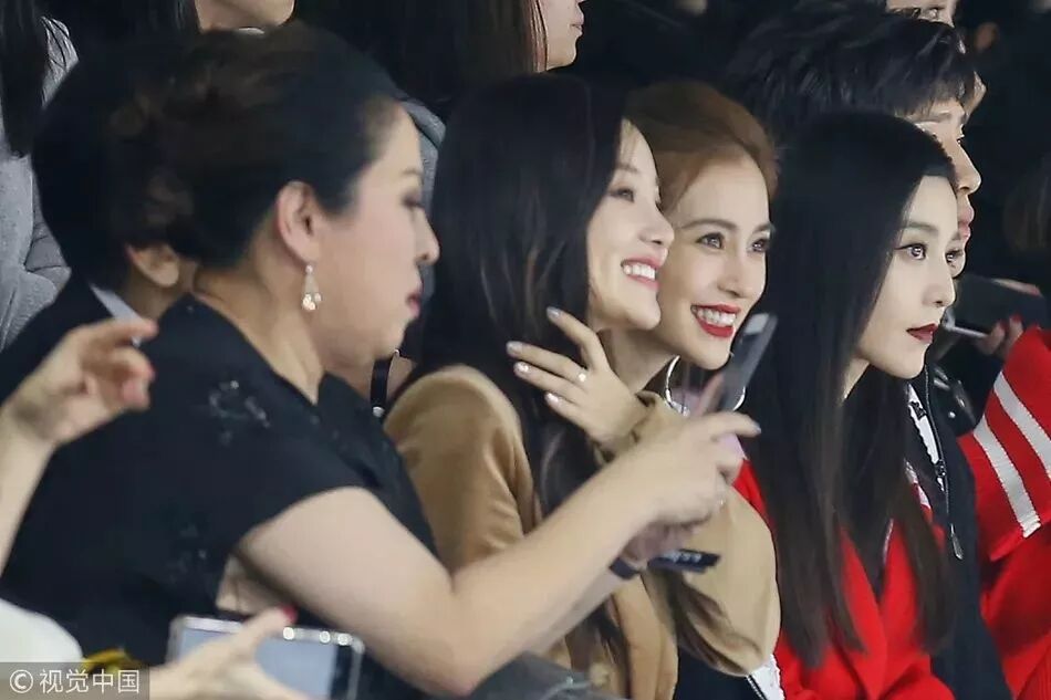 对比angelababy穿的一身略显干练的紧身衣裤,范冰冰看起来确实“大只”不少。