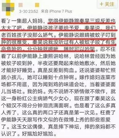 当时伊能静的眼睛被蚊子叮了好像,眼睛整个肿起来了,当时询问秦昊的时候,秦昊的态度十分的敷衍。