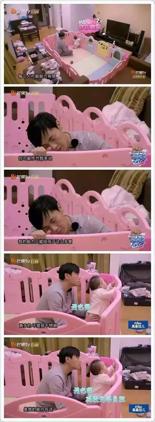 首先就是秦昊回家之后带孩子的时候漫不经心,看不太出来对孩子有多么疼爱啊或者想念啊,还不小心弄倒了围栏砸到女儿的头,造成孩子大哭,伊能静心疼的陪着孩子一起哭,但是秦昊就是一脸淡定。