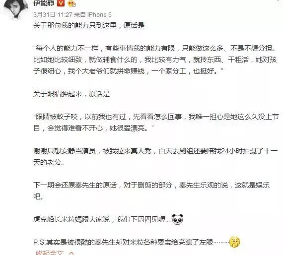 其实伊能静自己对秦昊的话也做了解释,说是节目的剪辑问题。