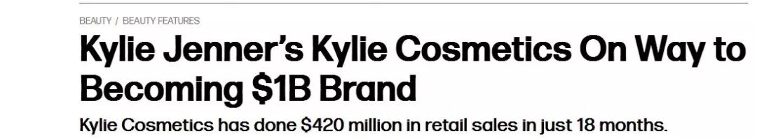 Kylie Cosmetics,刚上市时,30秒内就售空了,之后只要有新系列推出,1分钟以内就会售空,就凭借她的美妆系列,Kylie 就是最年轻的百万富翁。