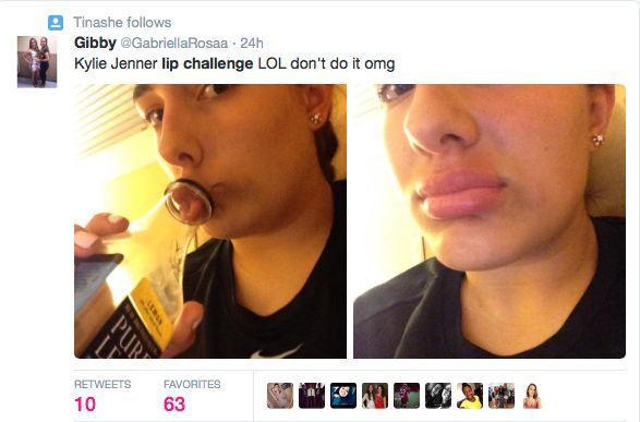 除了挣钱,粉丝的拥护也给她带来不少麻烦,比如这个标志性噘嘴式自拍表情,让很多粉丝以Kylie的嘴唇 为主角的 Lip chanllenge就引发了不少人的抱怨和一系列惨事。