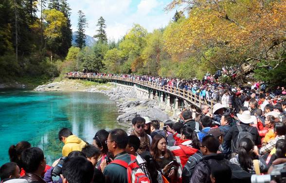 九寨沟单日接待4万人次,景区门口看到的全是人头...