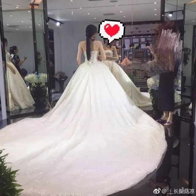怀孕7个多月的长腿菇凉试婚纱时,竟然丝毫不显肚子~~~