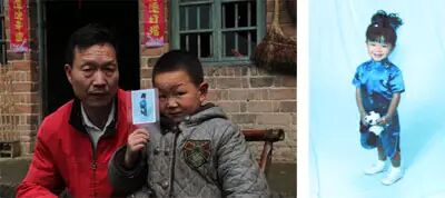 杨玲的弟弟杨成杰(右)拿着姐姐在美国生活多年后的照片与父亲合影。六年前,杨玲被计生办人员强行抱走。右图为杨玲在美国生活多年后的照片。