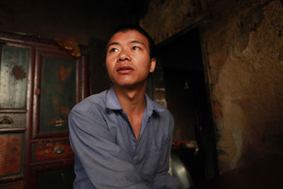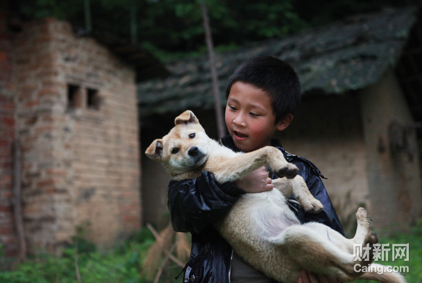合兴村的魏太喜是幸运的,他的儿子魏海龙被强行带走后,又被要了回来。图为魏海龙正和他家的狗玩耍。