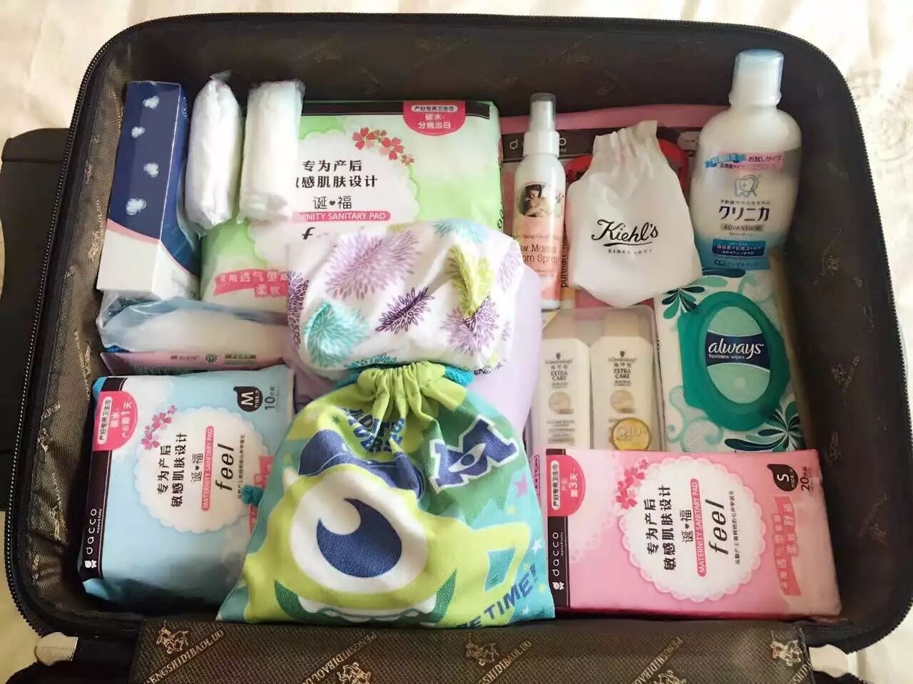 检查行李包/箱是否带齐,告诉老公或自己妈妈,东西都放在哪里。
