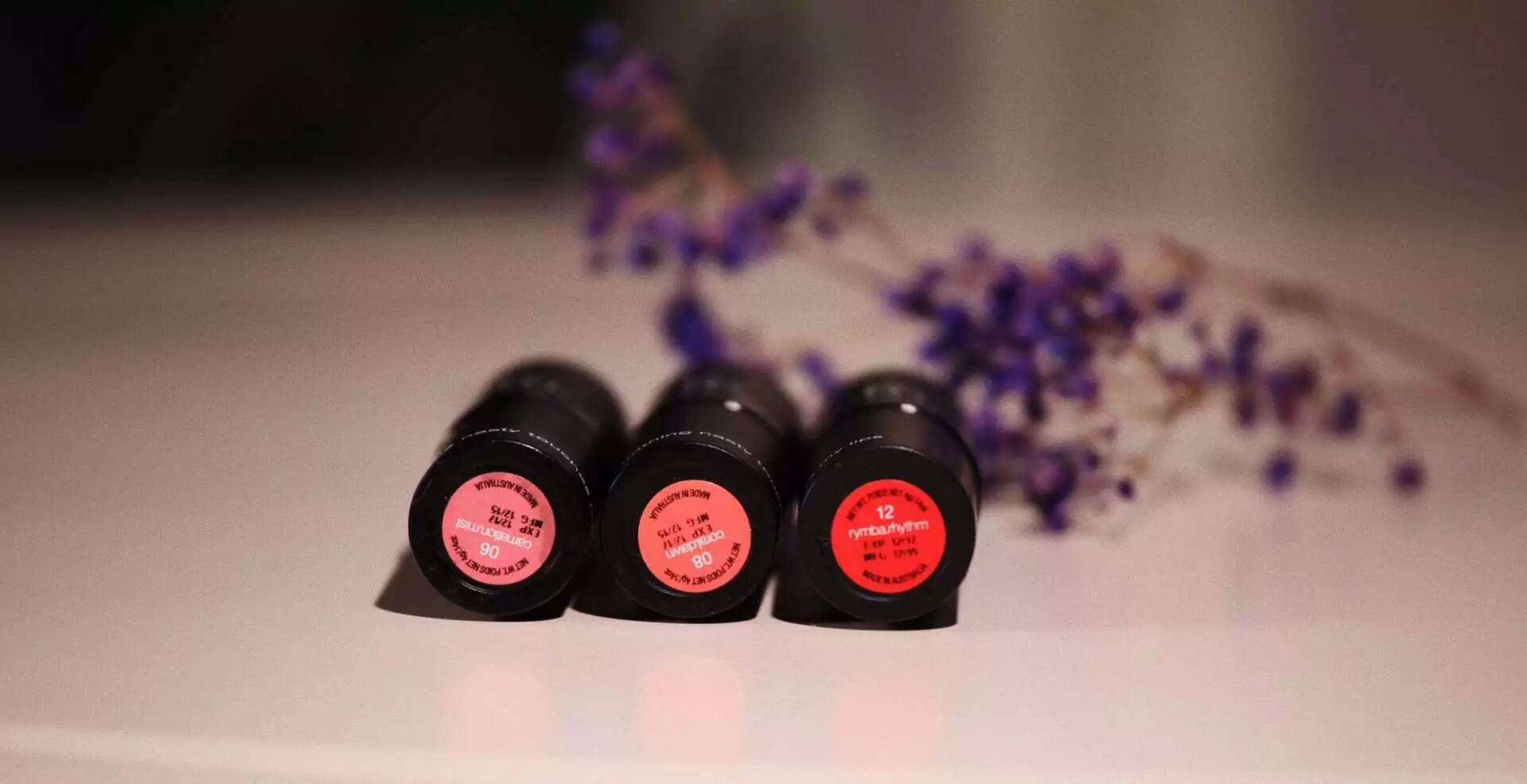 我买的是一个套盒,里面的色号是06,08和12,分别对应裸粉,橙红,大红。涂在嘴上是那种哑光雾面的感觉,但是不但不会干,还会很滋润。味道也是淡淡的类似肉桂的香味,很天然。我吃饭喝水都不会擦下去,完全没有负担。