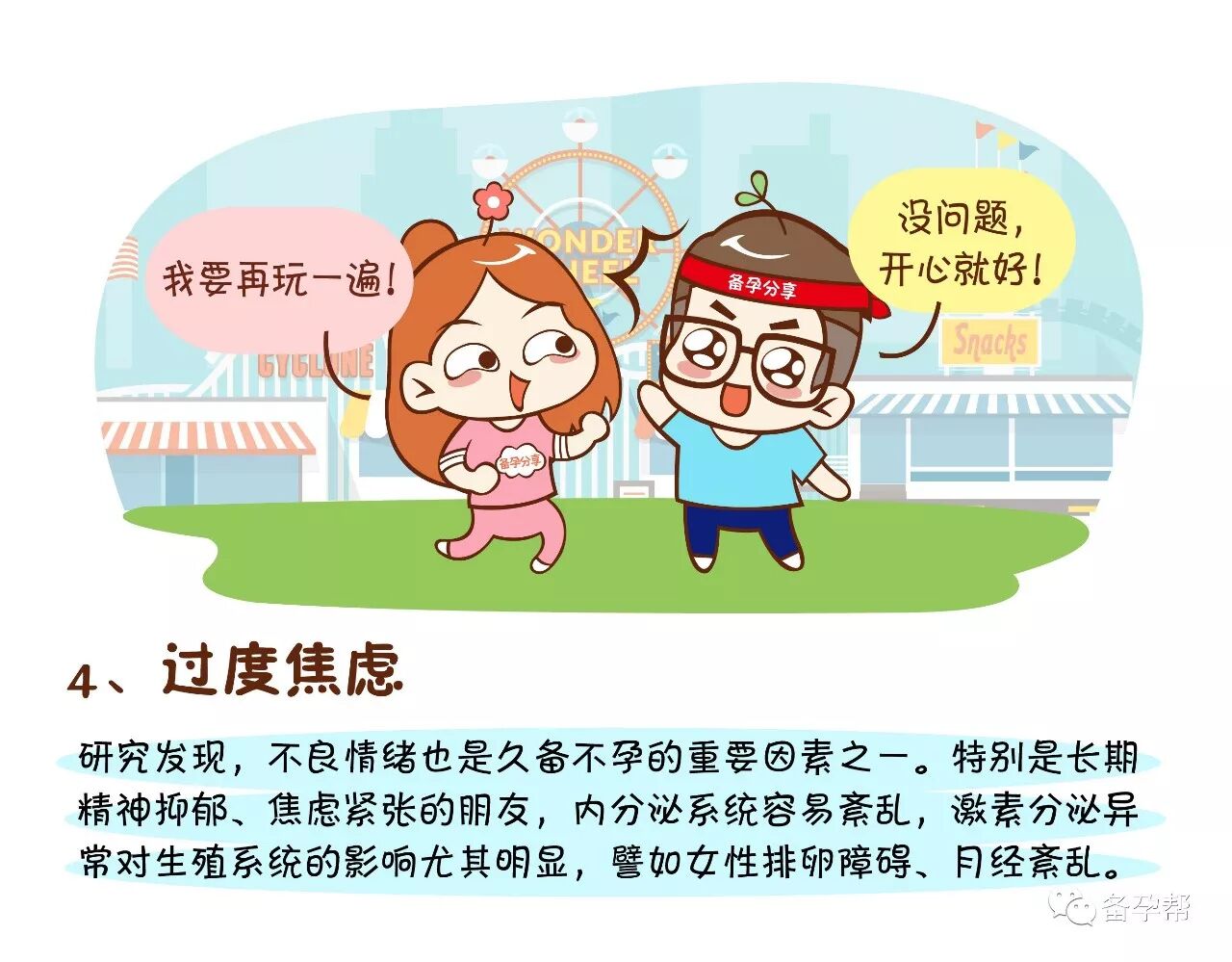研究发现,不良情绪也是久备不孕的重要因素之一。特别是长期精神抑郁、焦虑紧张的朋友,内分泌系统容易紊乱,激素分泌异常对生殖系统的影响尤其明显,譬如女性排卵障碍、月经紊乱。