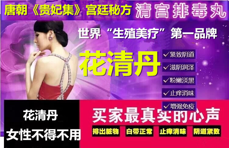 【花清丹产品说明】花清丹为女性用品,对女姓的妇科疾病有立竿见影的效果。花清丹出之古代《贵妃集》,又名“清宫丸”,属于妇科自助保健用品,也被誉为女性体内的清道夫,是“共和国名医”刘俊岑老先生专门针对女性生理特点和患者难以启齿又不能及时就诊的苦衷,依祖传宫廷秘方,经数十年现代医药临床应用研究发明的,专门针对妇科疾病的特效产品,通过超临界萃取技术,提取藏红花、血竭、僵蚕、冰片、蛇床子、没药、乳香、当归、黄芪等37味名贵中草药中的除湿、消毒、灭菌并结合活血补血中药成份,在保证分子量极为稳定的状态下入药而制成丹粒,通过阴道深处放置,从而达到调气血、保排泄、养阴户、消炎症、清血毒、强杀菌、除污物的功能,同时还可以美颜化斑,促进女性荷尔蒙分泌。是千百年来养颜抗衰佳品,其配方按性味、成份用量配比,集功效成份、载体成份、滋养成份、安全性成份为一体,科学搭配,体现中医学“整体与局部”,“内调外治”,“长效与速效”的先进理念。其所含挥发性成份通经络、行气血,促进女性雌激素分泌,经常使用可促使皮肤光滑、细腻、红润,使你有着少女的体香。