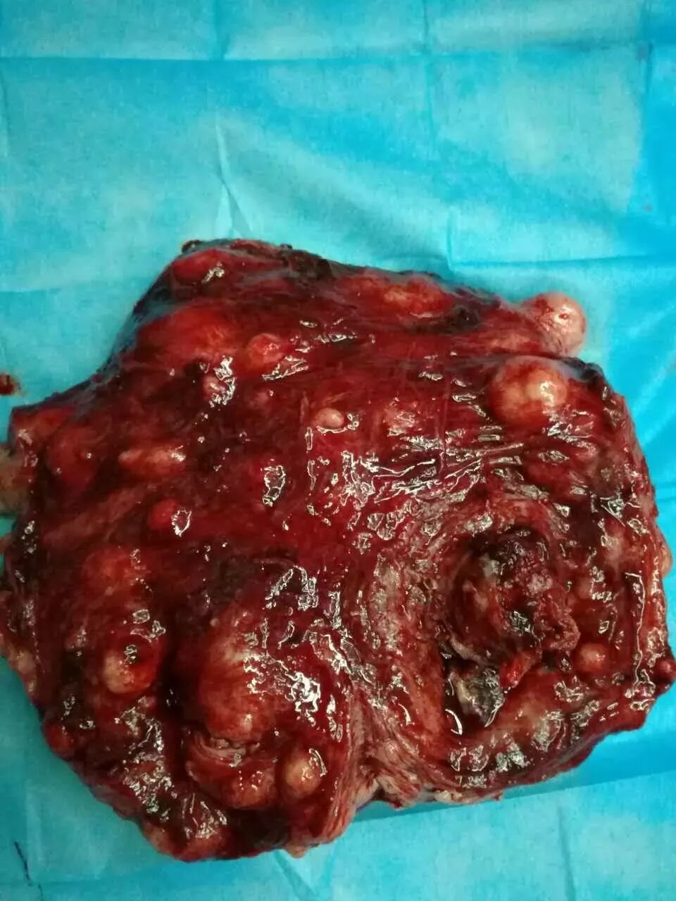 因为王女士子宫肌瘤反复发作,从患者健康角度考虑,应本人及家属要求,剖宫产术后,为其实施了子宫全切手术。 提前做好各种严密的预防措施,经过医护人员的精心手术,为王女士顺利剖下一名健康宝宝,子宫全切术后发现子宫肌瘤共85个,术后患者恢复良好。
