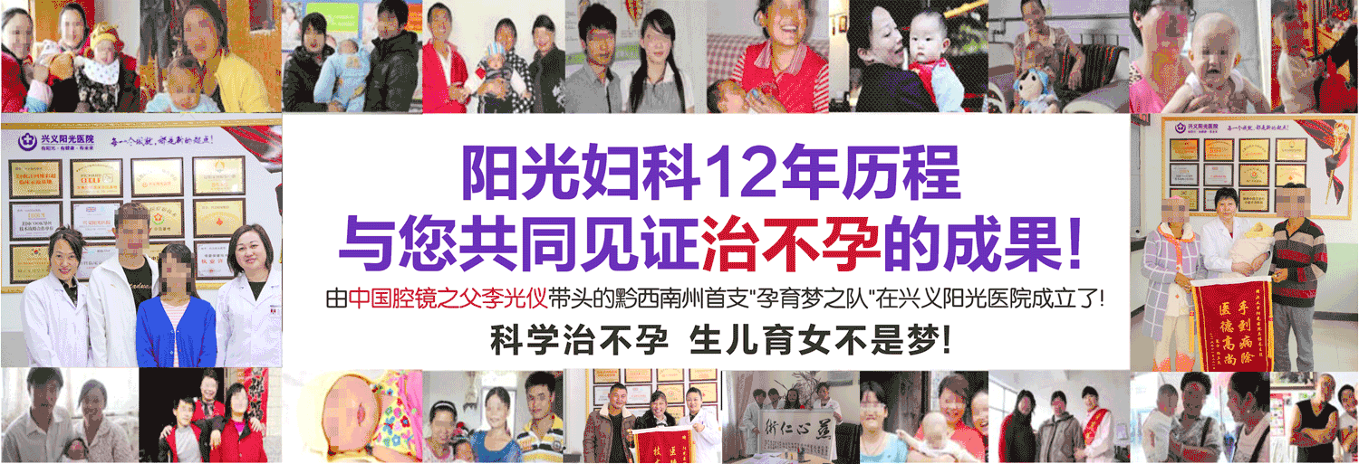 不孕不育的患者请注意: 兴义阳光妇科医院在不孕症的治疗技术方面在黔西南州首屈一指,特别邀请背上广不孕专家组成黔西南州首支“孕育梦之队”是以不孕学术研究的队伍,目前兴义阳光妇科医院开展“签约治不孕”、“3个月快速助孕”等助孕项目,力求在2017年最后三个月为不孕家庭送上孩子的笑声!