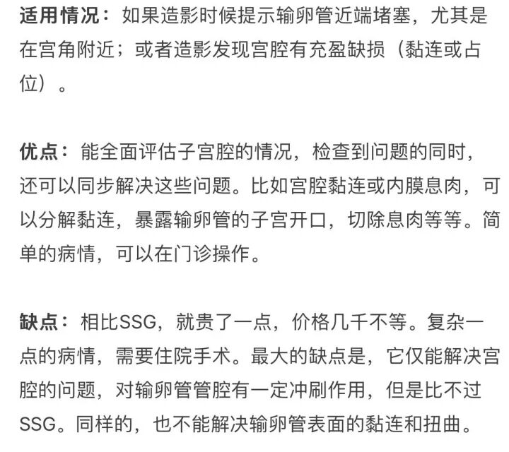 适用情况:几乎不孕的病人都可以选择,尤其是有伞端或盆腔黏连者,或是有痛经者(往往存在子宫内膜异位症)。