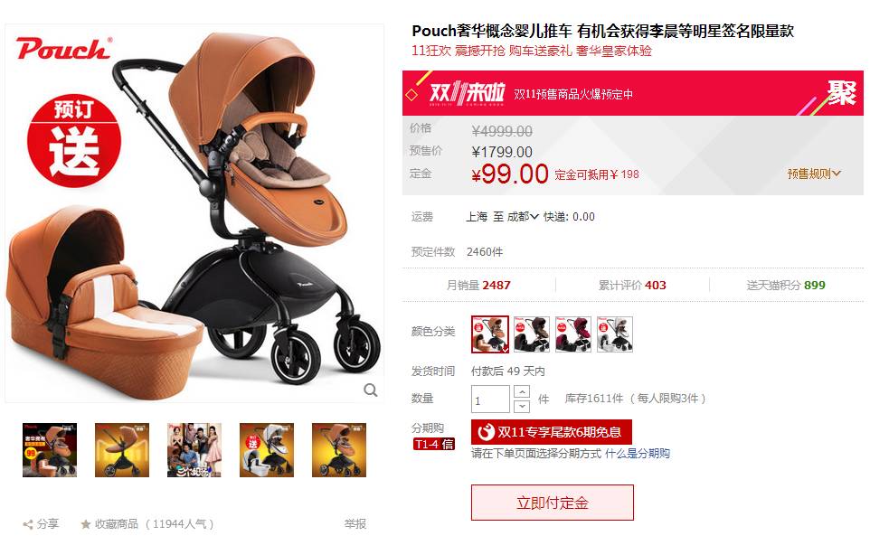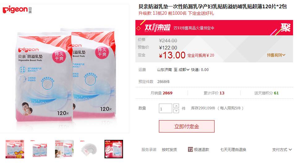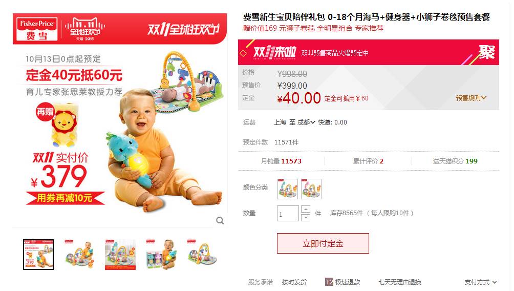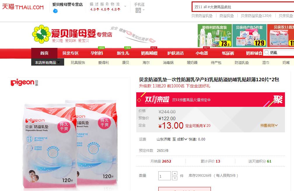 【购买途径】天猫,爱贝隆母婴专营店,双11预售款,现在交定金更划算。