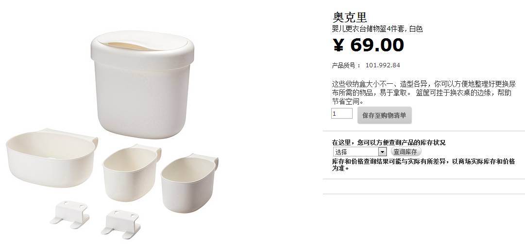 (更新:很好用!我们挂在小床侧面,放小帽子、小袜子、尿不湿、干湿两用巾、安抚奶嘴什么的,方便拿取方便找。)
