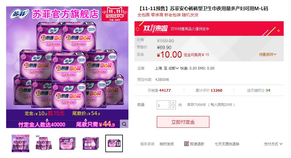 【购买渠道】苏菲天猫官方旗舰店,双11预售款,有折扣。