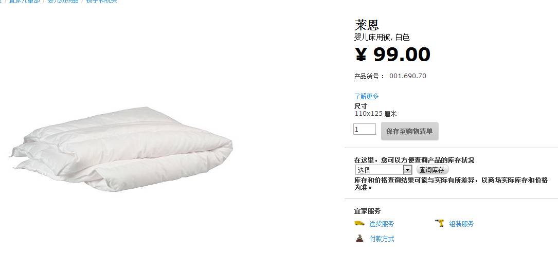 作为一个孕妇,智商真的有限,强烈推荐宜家,因为可以不用计算尺寸对不对,直接一站式把所有的床和床上用品买齐,以后补货也方便。而且价格跟好孩子这些差不多,性价比高。Sunday爷爷更是豪气的坚持所有东西全部买两套,放在两个城市,哈哈哈……