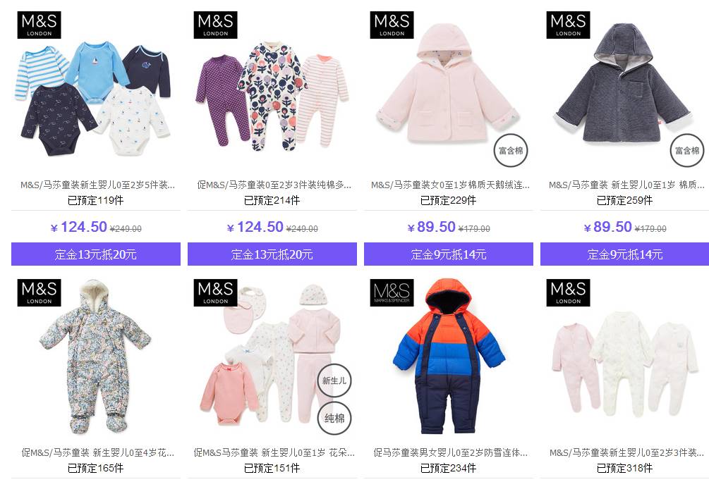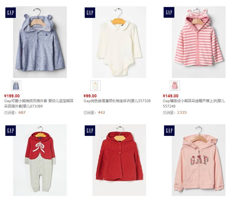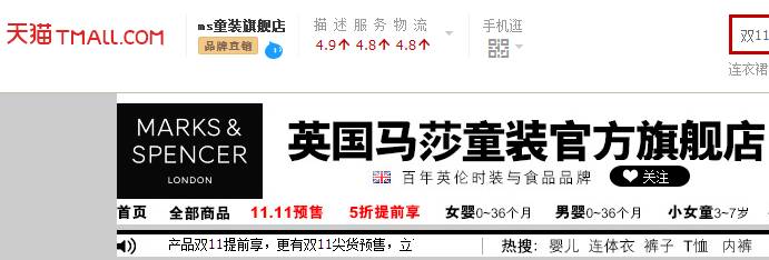 没有找到天猫旗舰店,实体店有很多,打折的时候RMB 70两件。还有各种帽子袜子,反正算好了月份买,就八九不离十。