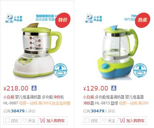 (更新:开始我买的另外一款小白熊,一点都不完美,于是又买了下面这只,非常好!容量大,而且带烘干,储奶罐、奶瓶、安抚奶嘴什么的一锅一起,直接烘干好,太完美了!)