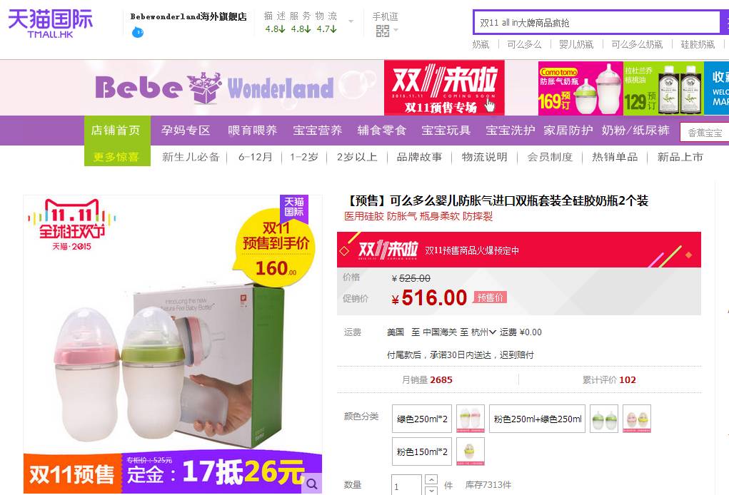 【购买途径】天猫国际店铺名:belewonderland海外旗舰店,双11预售,原价RMB 525,最后成交价两个RMB 160。
