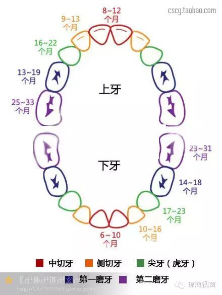 1、2颗牙期,4-8个月,可吃马铃薯泥、蛋黄泥等2、4颗牙期,8~12 个月,可吃肉泥、豆腐等3、6~8颗牙期,9~13个月,可吃水蒸蛋,蔬菜等4、8~12颗牙期,13~19 个月,可吃软饭、肉片等5、12~20颗牙期,16~20个月,可吃米饭、面条等。