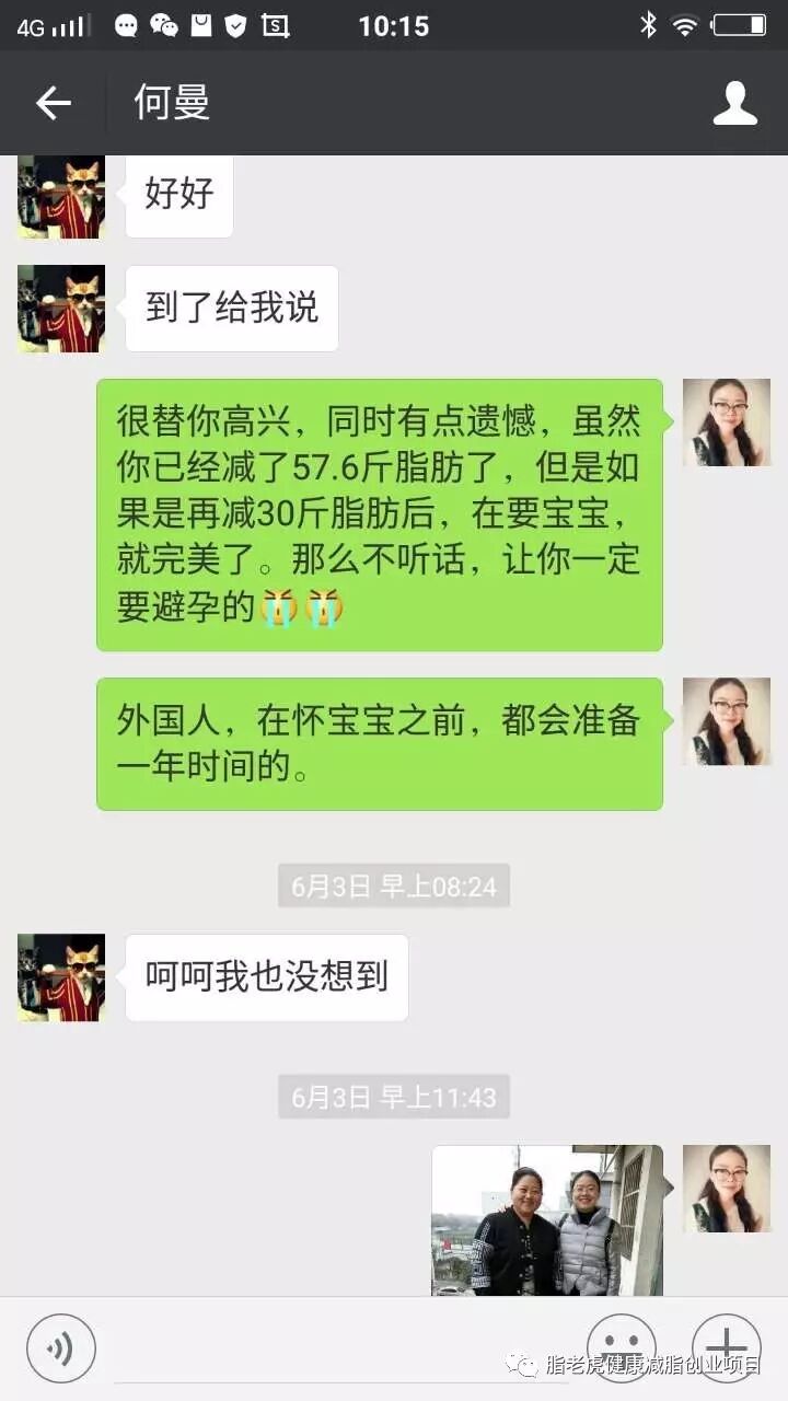 何曼是我的一个客户,一个约200斤的女孩,结婚3年没有受孕,用脂老虎减脂技术减了57.6斤脂肪后,她竟然怀孕了!!!