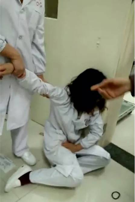 视频中的女子是通山县城管局局长徐良陆的老婆房某,脚踢怀孕护士之后还大声叫嚣:怀孕了算什么?有本事在家做少奶奶,不要出来做护士。说完继续揪住怀孕护士的头发扭打,被医护人员拉开之后还冲上去打耳光。打完之后打电话给老公:她把我儿子打出血了,我要见院长,马上带人过来!