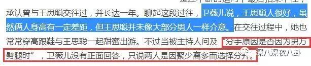 这段是女方自爆的,号称歌手+模特的卫薇儿,除了180标签,就是“王思聪前任”