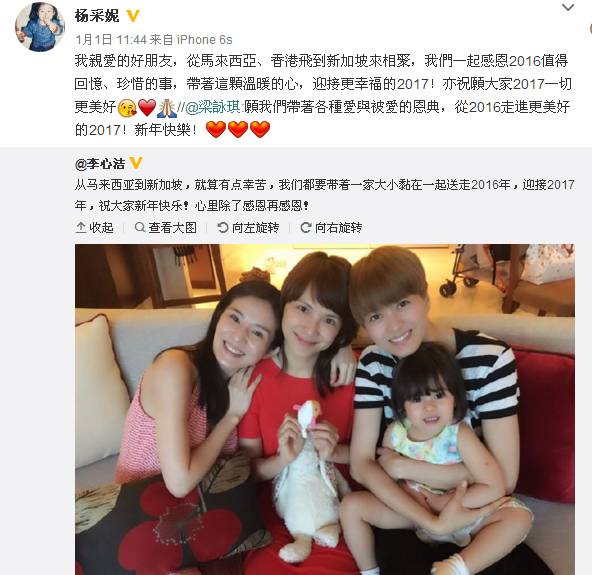 其实在跨年过元旦的时候,有网友看到杨采妮巧妙用枕头遮肚,就发现苗头啦。