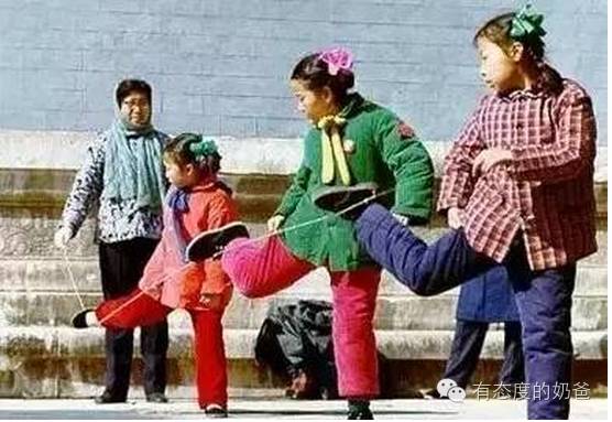 10、跳皮筋。(这是蚊子妈的最爱)一根皮筋,三个人就能玩起来,没人的时候就自己拿两个凳子牵着一个人练习,太怀念了!