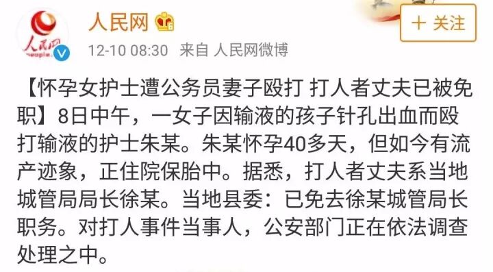 据悉,打人者丈夫系当地城管局局长徐某。当地县委:已免去徐某城管局长职务。对打人事件当事人,公安部门正在依法调查处理之中。